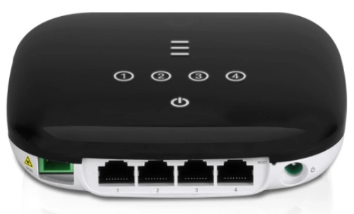 UFiber WiFi питается по технологии 24 В Passive PoE или при помощи адаптера питания 24 В, 0.5 А (входит в комплект поставки). Имеется один GPON WAN-порт и четыре гигабитных Ethernet-порта.