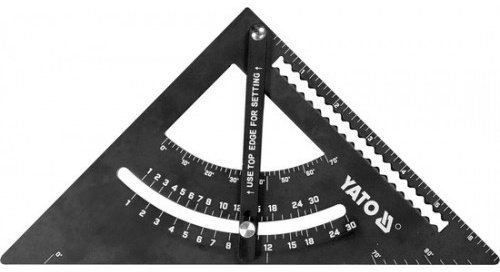 Алюминиевый уголок 170 мм от YATO. Общая длина кромки 175×175×275 мм, дюймовая шкала нанесена в диапазоне 0-7 дюймов. Без миллиметровой шкалы, во внутренней части имеется транспортир с подвижным креплением на болтах. Толщина 5 мм, может использоваться как торцовочная пила, транспортир или направляющая для пилы. Предназначен уголок для обмерных, чертежных и трассировочных работ.