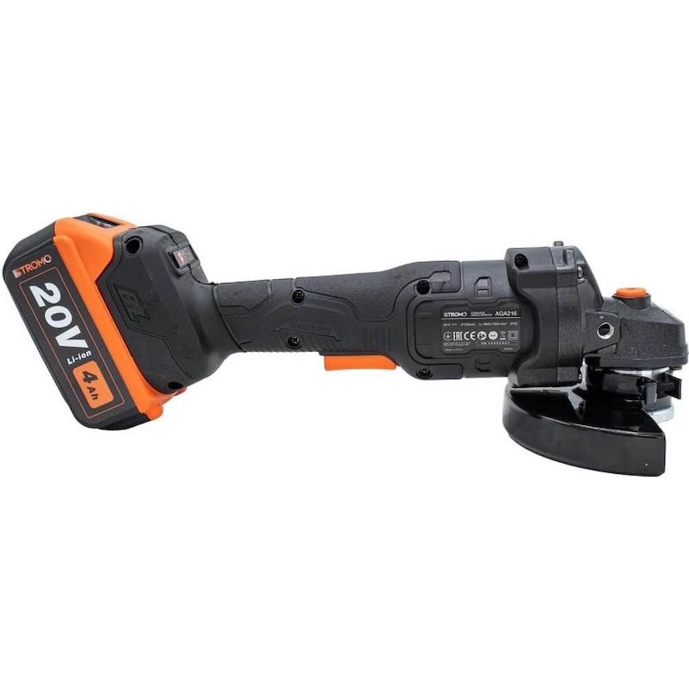 Угловая шлифовальная машина AGA216 от STROMO - это мощный и эффективный рабочий инструмент, идеально подходящий для резки и шлифовки различных материалов, таких как металл, камень или дерево. Оснащенная аккумулятором емкостью 4 Ач и напряжением 20 В, эта шлифовальная машина обладает отличной автономностью и мобильностью, что делает ее идеальной для работы как в помещении, так и на улице без привязки к стационарному источнику питания.