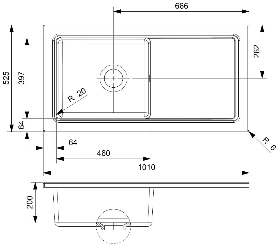 Размер мойки1010х525 мм