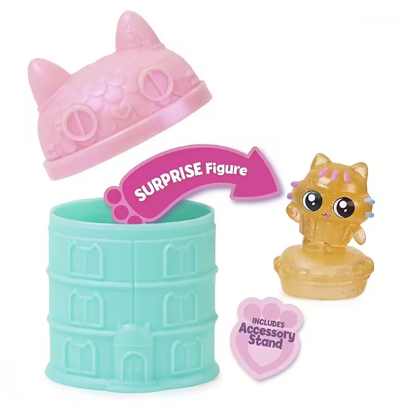 Соберите своих любимых персонажей из Кукольного дома Габби с помощью фигурок-сюрпризов! Каждая мини-коллекционная фигурка поставляется в многоразовой 3-дюймовой капсуле для Кукольного домика, и кто внутри - загадка! Поднимите верхнюю часть контейнера в глухой коробке, чтобы открыть супермилую фигурку и тематическую подставку для аксессуаров.