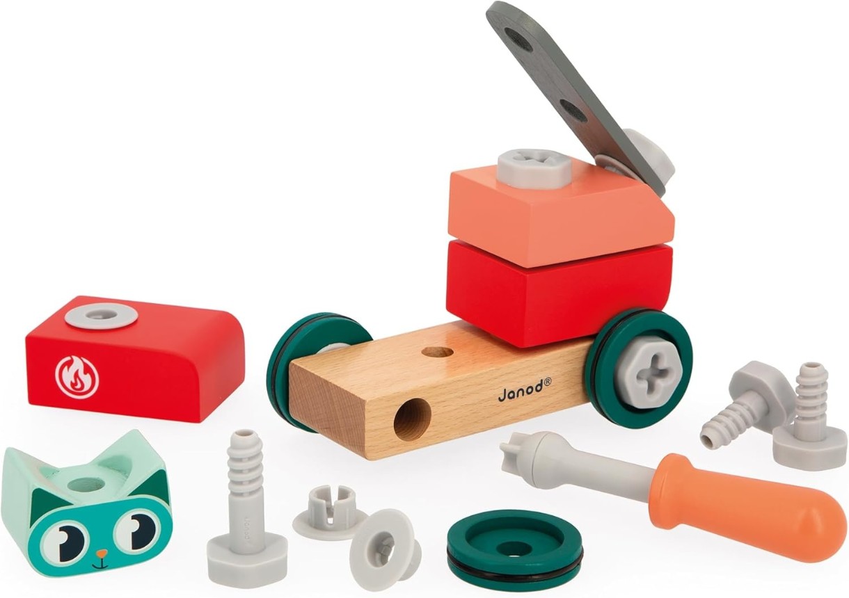 Маленький кот прибыл на стройплощадку! Эта деревянная машинка, которую можно собрать своими руками, помогает детям от 2 лет и старше развивать воображение и мелкую моторику, собирая детали перед тем, как начать гонку на готовом объекте! Эта конструкторская игра состоит из 10 деревянных деталей и 16 пластиковых элементов (винтов, гаек и вставок). В комплект также входит отвертка и карточка с моделью, которая поможет начинающим любителям мастерить своими руками собрать машинку. Винты имеют насечки для большей реалистичности и удобства для малышей. Какое удовольствие иметь возможность возиться с ними, как взрослые! Игра «Сделай сам» идеально подходит для развития мелкой моторики, ловкости и точности! А как только машинка будет собрана, она готова отправиться в путь... или на гоночную трассу! Приедет ли наш верный друг-кот на стройплощадку в своей красно-зеленой игрушечной машинке в гости или будет гонять с друзьями? Дети придумают множество историй о своей машинке, которую можно собрать своими руками. Эта самодельная игрушка для кошек изготовлена из древесины, сертифицированной FSC™, и является частью нашей коллекции самодельных игрушек для ролевых игр: Brico'Kids.