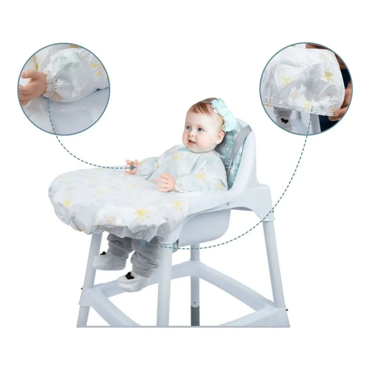 Еще одна инновация от Sevibebe. Чехол на детский стульчик с нагрудником помогает сохранить одежду вашего малыша чистой, обеспечивая при этом гигиеничную среду для кормления.