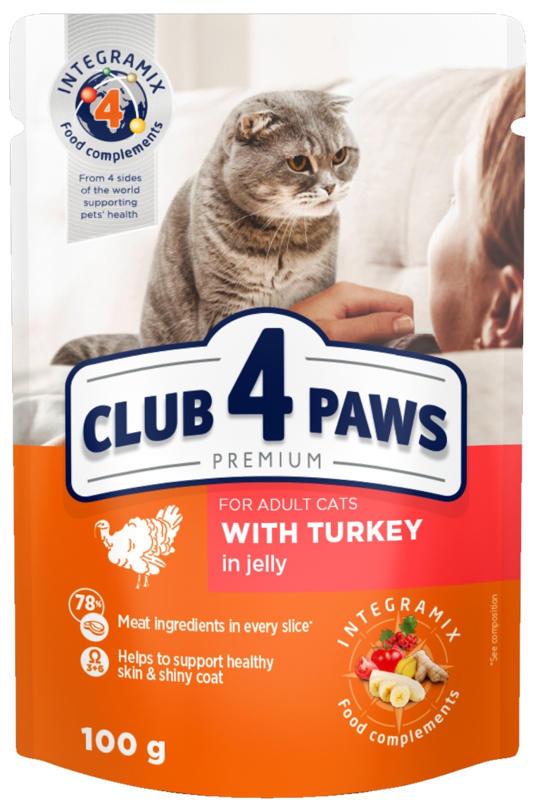 Влажный корм для кошек Club 4 Paws Adult Cats with Turkey in Jelly 0.1kg 24pcs