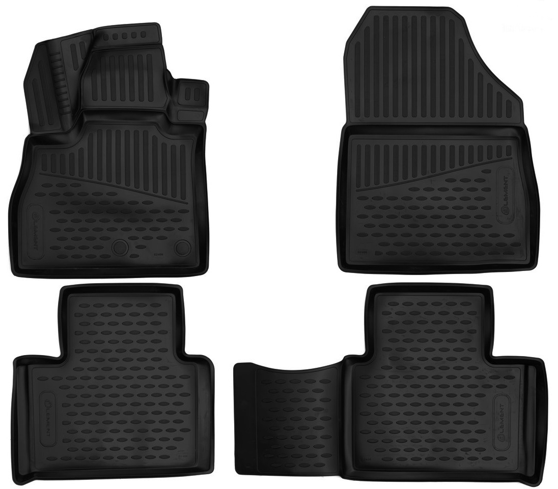 Коврики устойчивы к истиранию. Благодаря высоким бортикам, надежно защищают внутреннюю обивку салона от грязи и снега. Передняя часть водительского коврика уходит под педаль акселератора, что исключает нештатное зацепление педали.