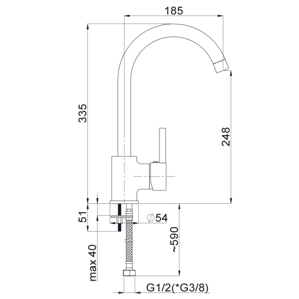 Длина излива185 мм