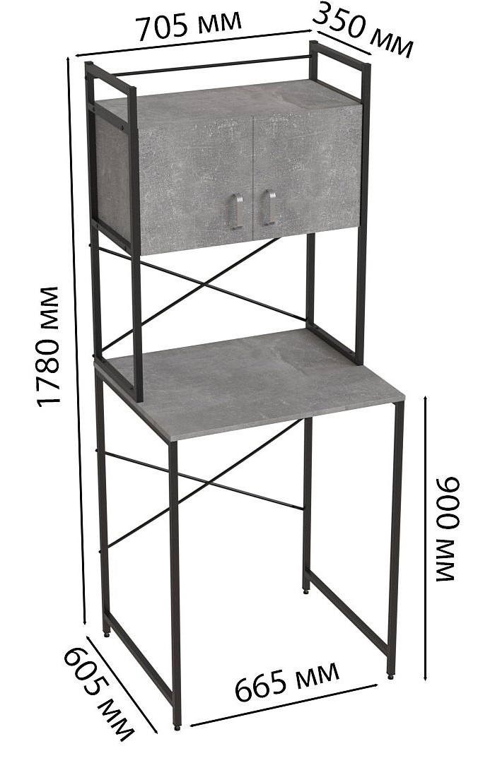 Стеллаж для стиральной машины Ferrum-Decor Bafrum 404 178x70.5x60.5 Beton/Black (BED40400)