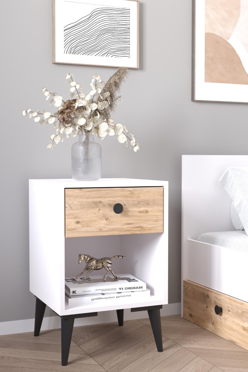 Прикроватная тумба Remaks Zambak 1 C White/Atlantic Oak