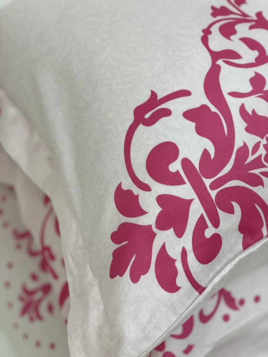 2 наволочки розовые, с графикой, с краями по бокам - 50х70 см; 1 лист розового цвета с графикой и резинкой – 200×220 см;