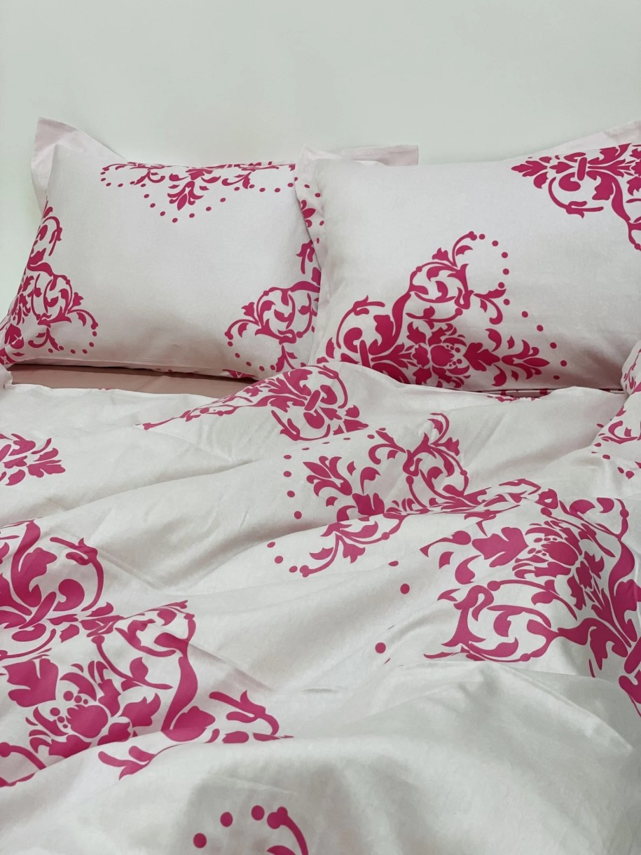 1 пододеяльник розового цвета с графикой - 200×220 см;
