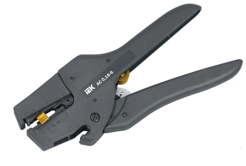 Стриппер IEK АС 0.18-2.5 ИЭК TFS-D3 оснащен регулятором усилия. Инструмент можно использовать для резки многожильных и одножильных проводов.
