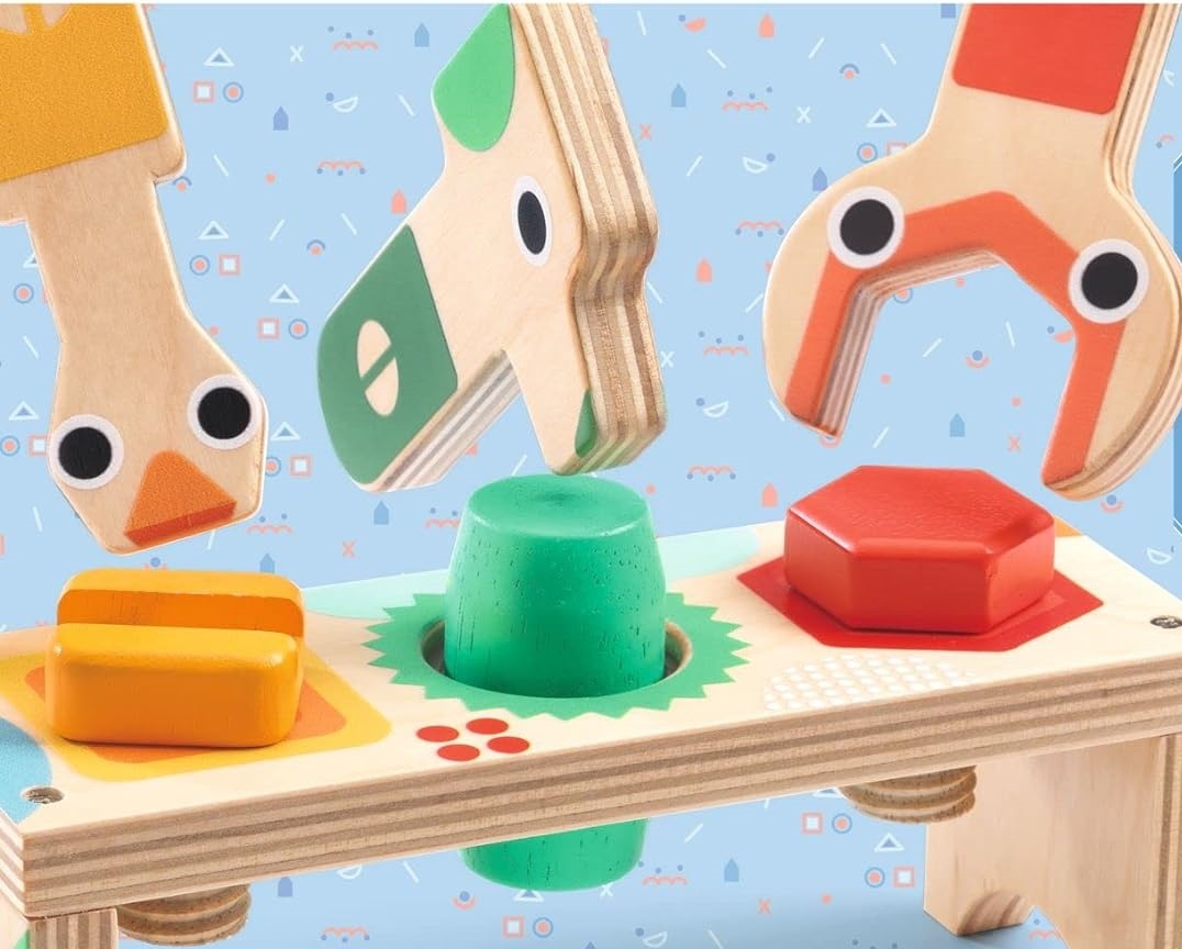 Детская развивающая игра Djeco «Забивалка» от французского производителя Djeco (Джеко) развивает мелкую моторику, зрительно-моторную координацию и внимание ребёнка. Удобные по размеру инструменты с закругленными краями отлично ложатся в маленькие ручки малыша. Это первый набор инструментов вашего ребёнка! Подойдёт для детей от 1,5 года. Набор продается в красивой подарочной коробке.