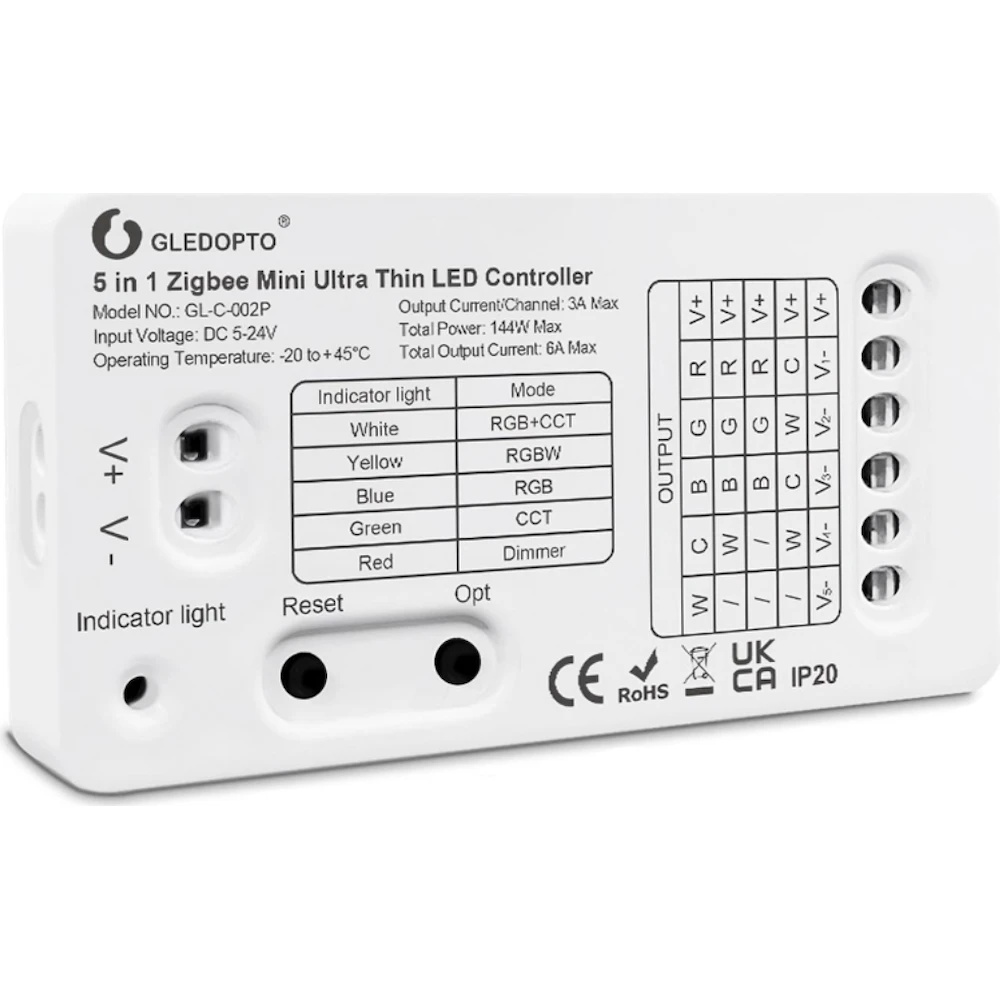 Умный контроллер Gledopto GL‑C‑006P (Mini) — это компактный Zigbee‑LED‑контроллер, предназначенный для управления светодиодными лентами и декоративным освещением в умном доме. Он поддерживает работу через Zigbee 3.0, что обеспечивает стабильную связь с шлюзом и интеграцию с множеством платформ: Philips Hue, SmartThings, Tuya/SmartLife, Home Assistant и др.