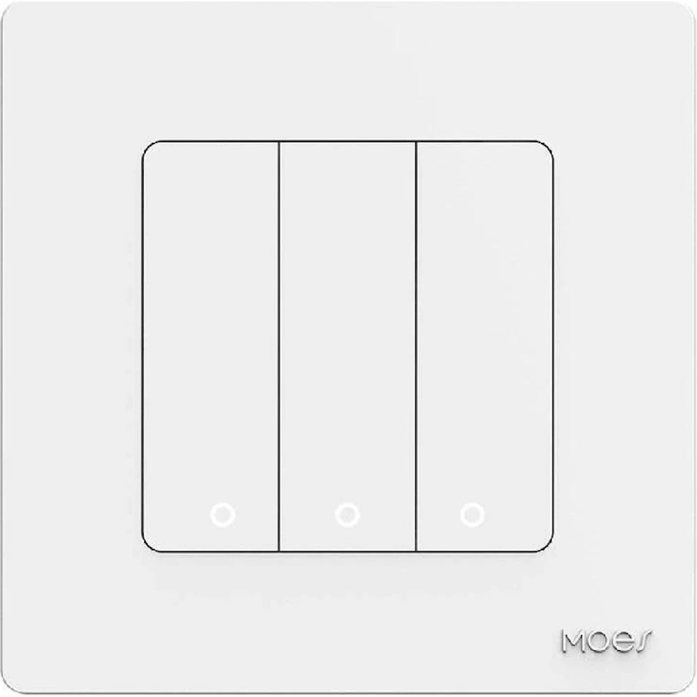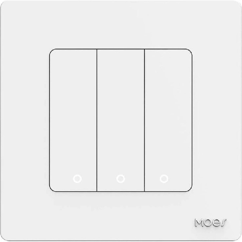 Умный выключатель Moes ZT-SR-EU3-WH-MS — это современный трёхклавишный Zigbee-выключатель, предназначенный для интеграции в систему умного дома. Он заменяет стандартный настенный выключатель и позволяет управлять тремя независимыми линиями освещения или нагрузками.