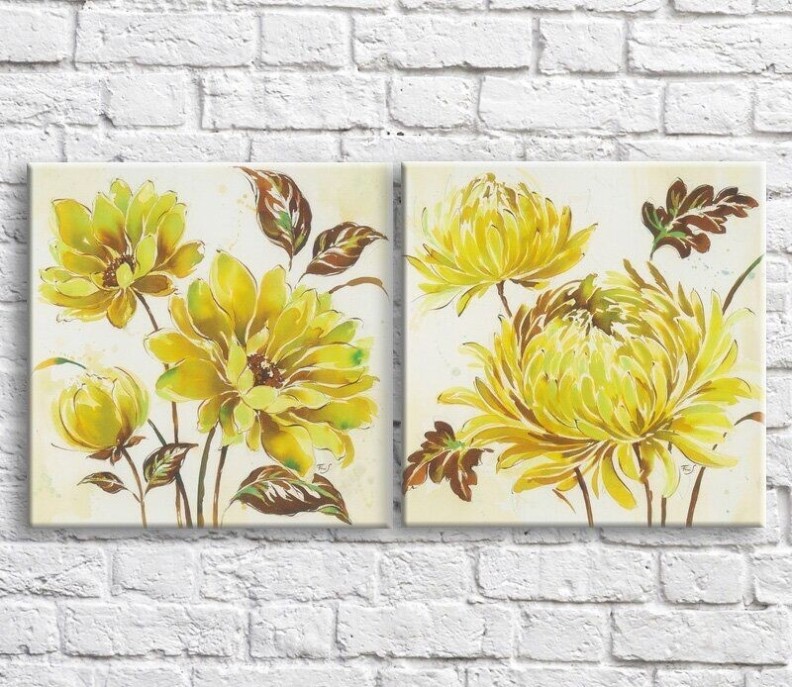 Картина ArtPoster Yellow chrysanthemums on a Beige background, diptych (3467718)