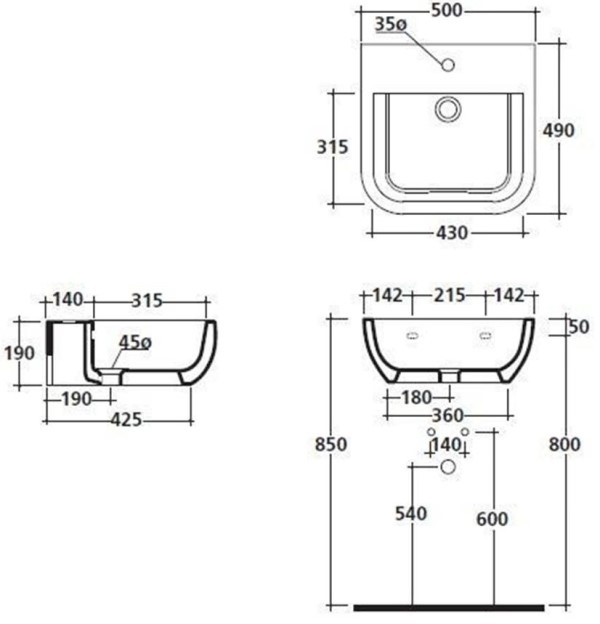 Умывальник Galassia XES 1F (112990) фото №2 — интернет-магазин Desire.md