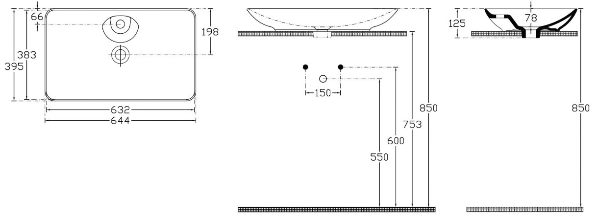 Размеры644х395х125 мм