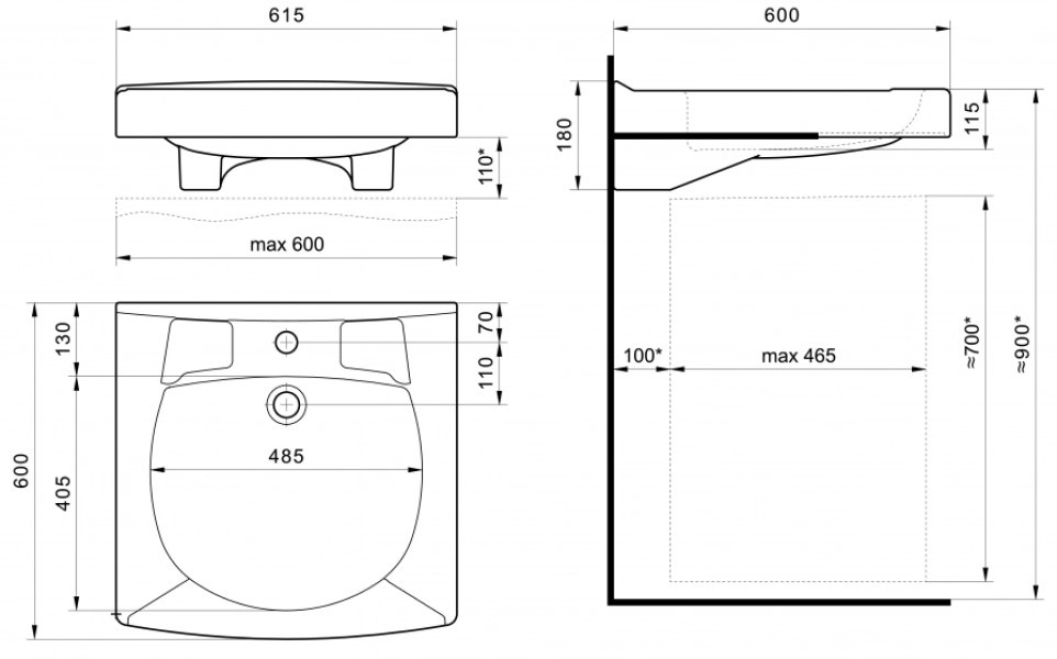 Размеры615х600х180 мм
