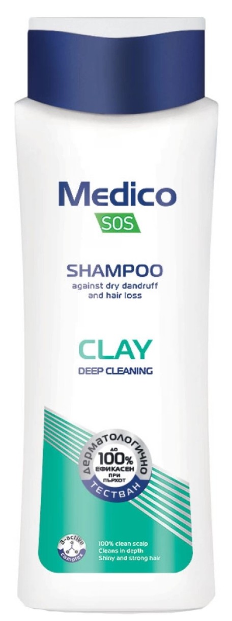 Medico SOS Шампунь против перхоти с белой глиной для жирной кожи головы.