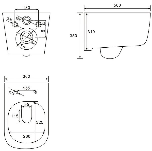 - Ширина: 360 мм — компактные размеры, которые подходят для различных типов ванных комнат.