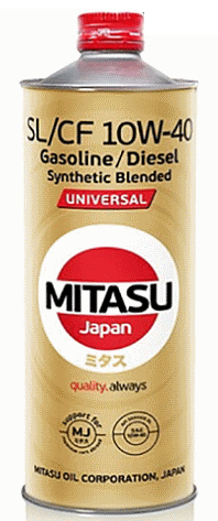 MITASU UNIVERSAL SL/CF 10W-40 Synthetic Blended – моторное масло для бензиновых и дизельных двигателей, изготовленное с использованием высококачественных синтетических компонентов и высокотехнологичного пакета моюще-диспергирующих присадок. Обладает высокой стойкостью к окислению. Предназначено для всесезонной эксплуатации.
