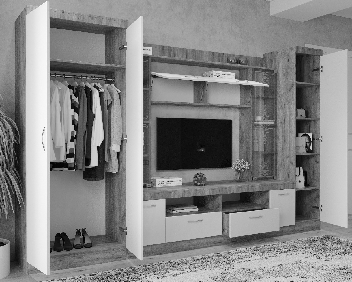 Гостиная ML-Mobila МЛ-2 Премьера 15 без рисунка 3100 Дуб Крафт Серый/Дуб Крафт Белый