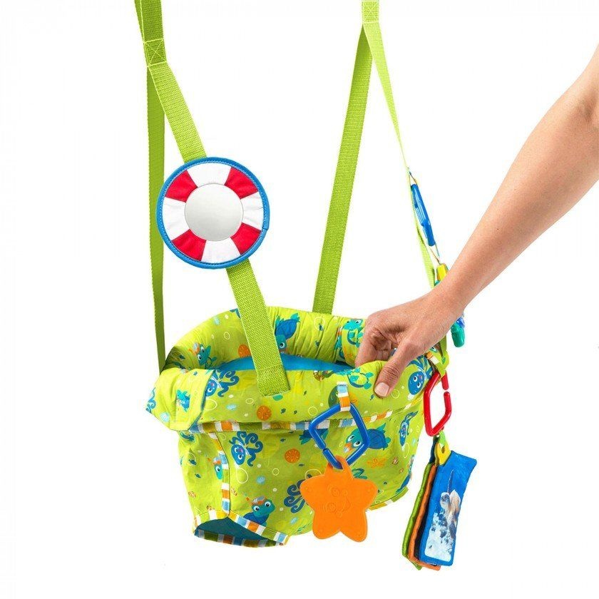 Babу Einstein Sea and Discover — это первый тренажер в жизни ребенка. Когда ребенок начинает активно двигаться, прыгунки — это то, что ему необходимо. Их можно использовать в качестве качелей или тарзанки. Они разработаны для детей от 6 месяцев и до достижения ими 12 кг.