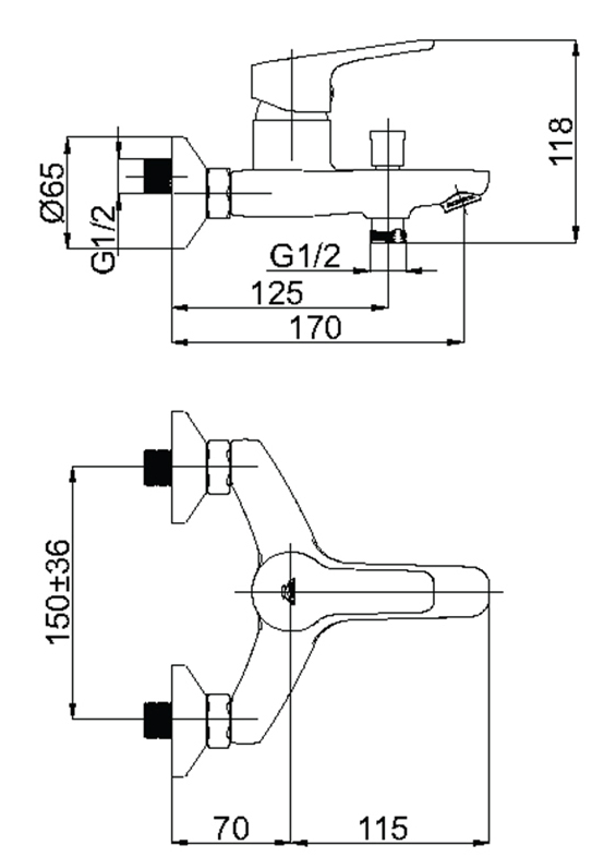 Смеситель для ванны Rubineta UNO-10 BK (N10061)