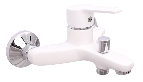 Rubineta N10071 White - элегантный белый смеситель с хромированными элементами, предназначенный для ванной с душем. Изготовлен на литовской фабрике с полным соответствием европейским стандартам качества и безопасности.