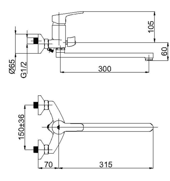 Смеситель для ванны Rubineta UNO-11/C (N11CD01)