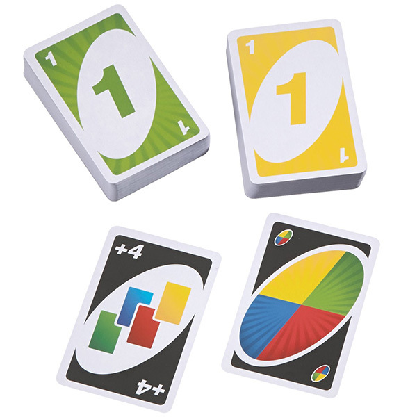 Классическая настольная игра "UNO" – отличное семейное развлечение. Каждому игроку рандомно (то есть в случайном порядке) раздается по 7 игральных карт вверх «рубашкой». Одна карта из колоды кладется на стол лицевой стороной, остальные откладываются в прикуп. В процессе игры каждый из участников должен выложить карту, которая по цвету или по картинке совпадает с картой, присутствующей на столе. Если подходящей карты у игрока нет на руках, то он берёт карты из прикупа до тех пор, пока не найдёт ту, которая будет удовлетворять вышеперечисленным требованиям. Когда на руках остается последняя карта, обязательно нужно крикнуть «Уно!» Если же это сделают твои соперники, то ты вынужден будешь взять ещё карты. После того как один из игроков избавится от всех карт на руках, происходит подсчет очков. Количество заработанных очков складывается из суммы карт, оставшихся на руках менее удачливых соперников. Выигрывает же тот, кто первый из игроков наберет 500 очков.