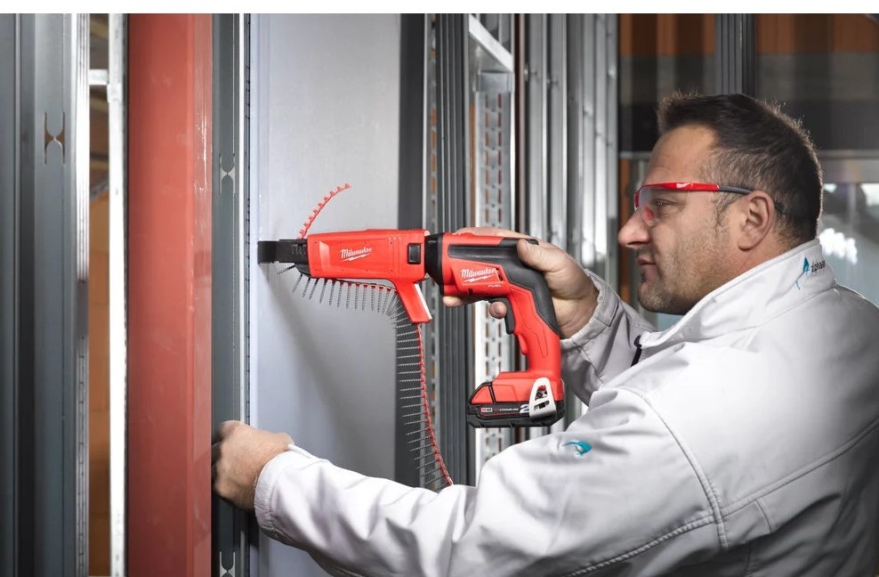 Аккумуляторный шуруповерт для гипсокартона Milwaukee M18 FSGC-202X FUEL 4933459199 оснащен хвостовиком Hex, что способствует простой смене оснастки. Благодаря бесщеточному двигателю, срок его службы выше. Съемный магазин позволяет использовать инструмент не только в качестве шуруповерта, но и с установленным магазином. Кейс решает вопрос хранения и транспортировки.