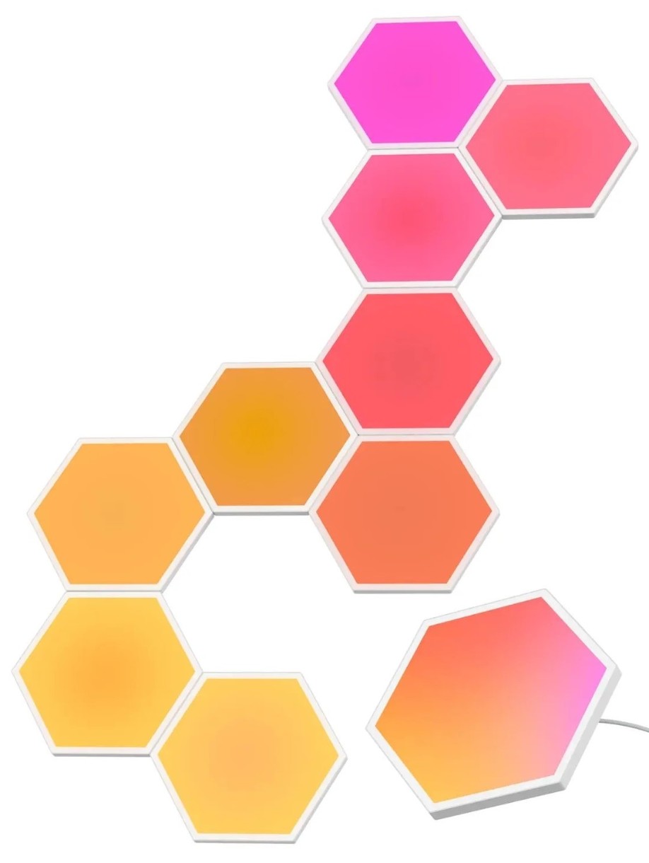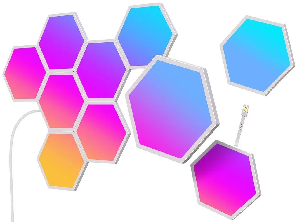 Световые панели Govee Glide Hexa состоят из 10 панелей, которые можно комбинировать в различные фигуры. Их можно контролировать с помощью ваших любимых голосовых помощников, таких как Alexa и Google Assistant, а также приложения Govee Home. Вы даже можете настроить дизайн, эффекты, цвета и многое другое.