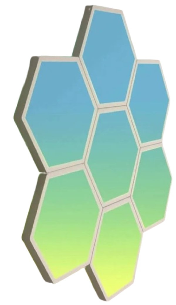 Благодаря уникальному прозрачному покрытию ваши панели будут сиять на стенах сзади, добавляя флуоресцентное свечение комнате и игровому декору, как никакое другое. Каждая панель может одновременно отображать до 6 цветов для ультраплавного анимированного освещения.