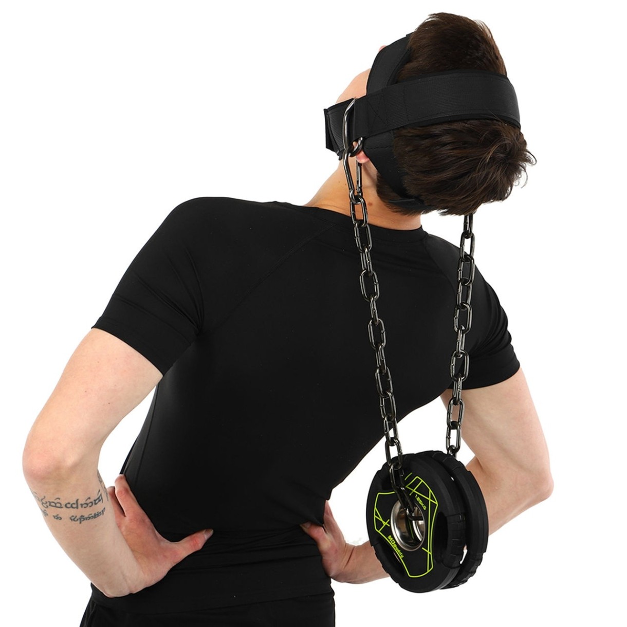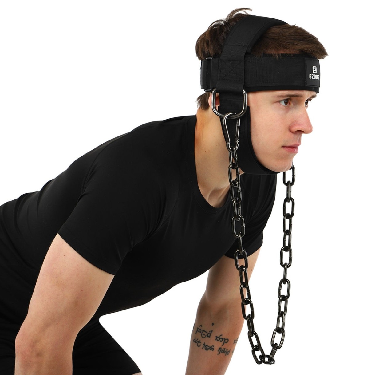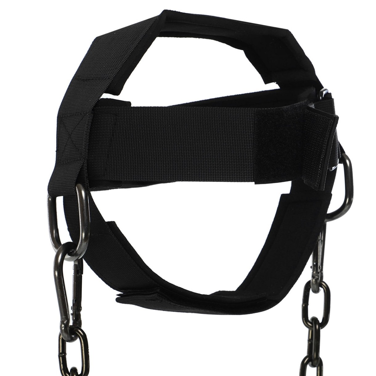 NECK HARNESS EZOUS N-06 - это удобный аксессуар, который позволяет нагрузить мышцы шеи. Упряжь состоит из специального крепления на голову, которое изготовлено из полиэстера. К креплению на голову с помощью карабина цепляется стальная цепь, на нее можно подвесить дополнительное отягощение. В качестве отягощения при выполнении упражнений с упряжью можно использовать диски от штанги или гантели. Вес отягощения необходимо постепенно увеличивать, чтобы не травмировать мышцы шеи. Удобное крепление на голову регулируется по посадке и фиксируется с помощью липучки. Карабины есть на обоих концах цепи.