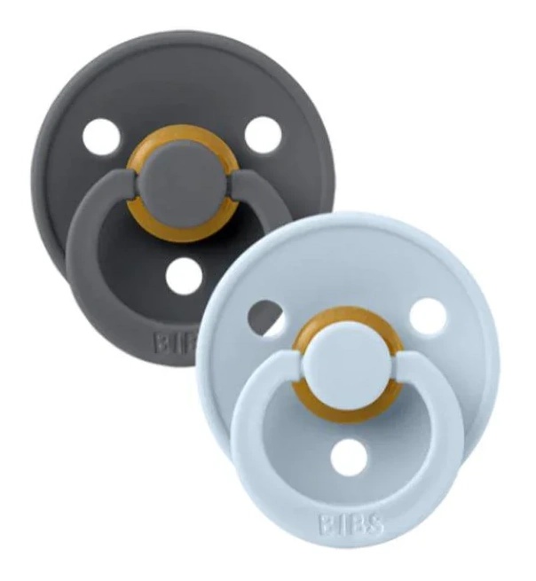 Соска Bibs из коллекции Color имеет круглую внешнюю форму с 3 отверстиями, которые обеспечивают циркуляцию воздуха и предотвращают раздражение вокруг рта ребенка. Кольцо вокруг пустышки круглое и украшено гравировкой BIBS. Пустышки BIBS Color изготовлены из латекса, материала, полученного из жидкости каучукового дерева (гевеи). Эту жидкость очищают, получая при этом латекс — прочный, эластичный, мягкий материал, по консистенции похожий на материнскую грудь.