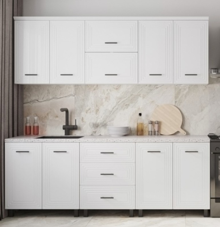 Кухонный гарнитур ML-Mobila Ева 2.20 Белый/Белый Глянец