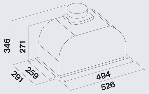 Функциональность данного прибора обеспечивает один мотор, максимальная производительность которого составляет 1040 м³/ч. Уровень шума при работе не превышает 68 dbA. Для выбора одной из трех скоростей предусмотрена электронная панель управления с кнопками Soft touch, которые также отвечают за полное отключение прибора и включение подсветки. Для освещения использованы две светодиодные лампы мощностью 1.2 Вт. Диапазон цветовой температуры составляет 3200 К. Ресурса ламп хватит на весь срок работы прибора, поэтому менять их не придется.
