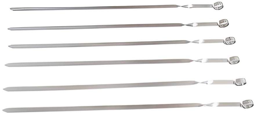 Набор шампуров LA GRATAR 6 штук длиной 45 см, выполнен из высококачественной нержавеющей стали. Качество стали гарантирует, что продукция Casa Masa не подвержена коррозии и (при соблюдении условий эксплуатации) сохранит блестящий вид надолго.