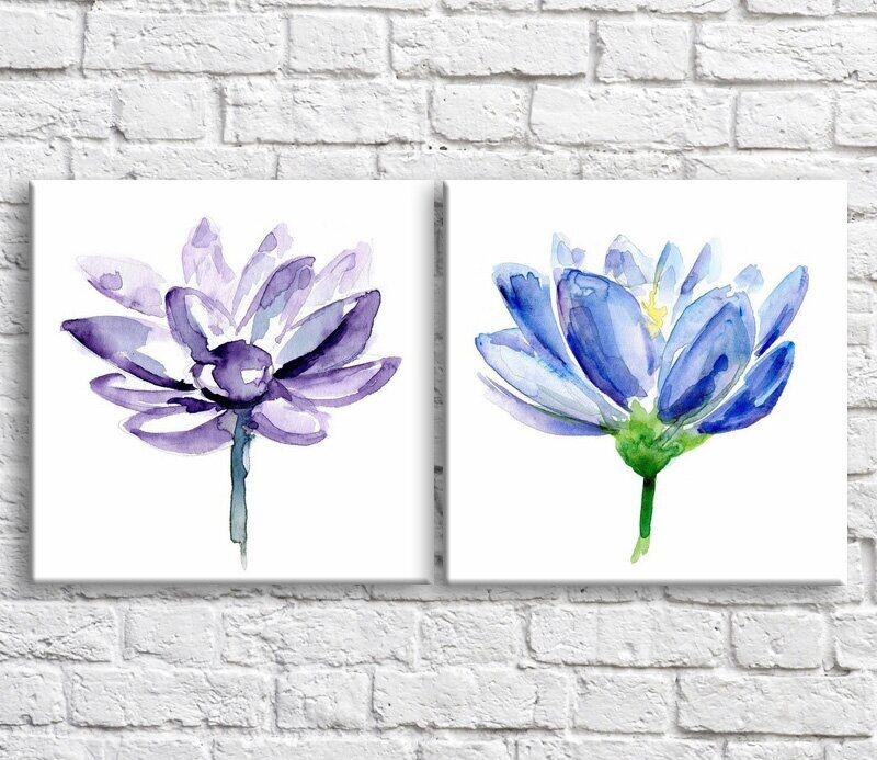 Картина ArtPoster Blue and Purple flowers on White background (3467791)