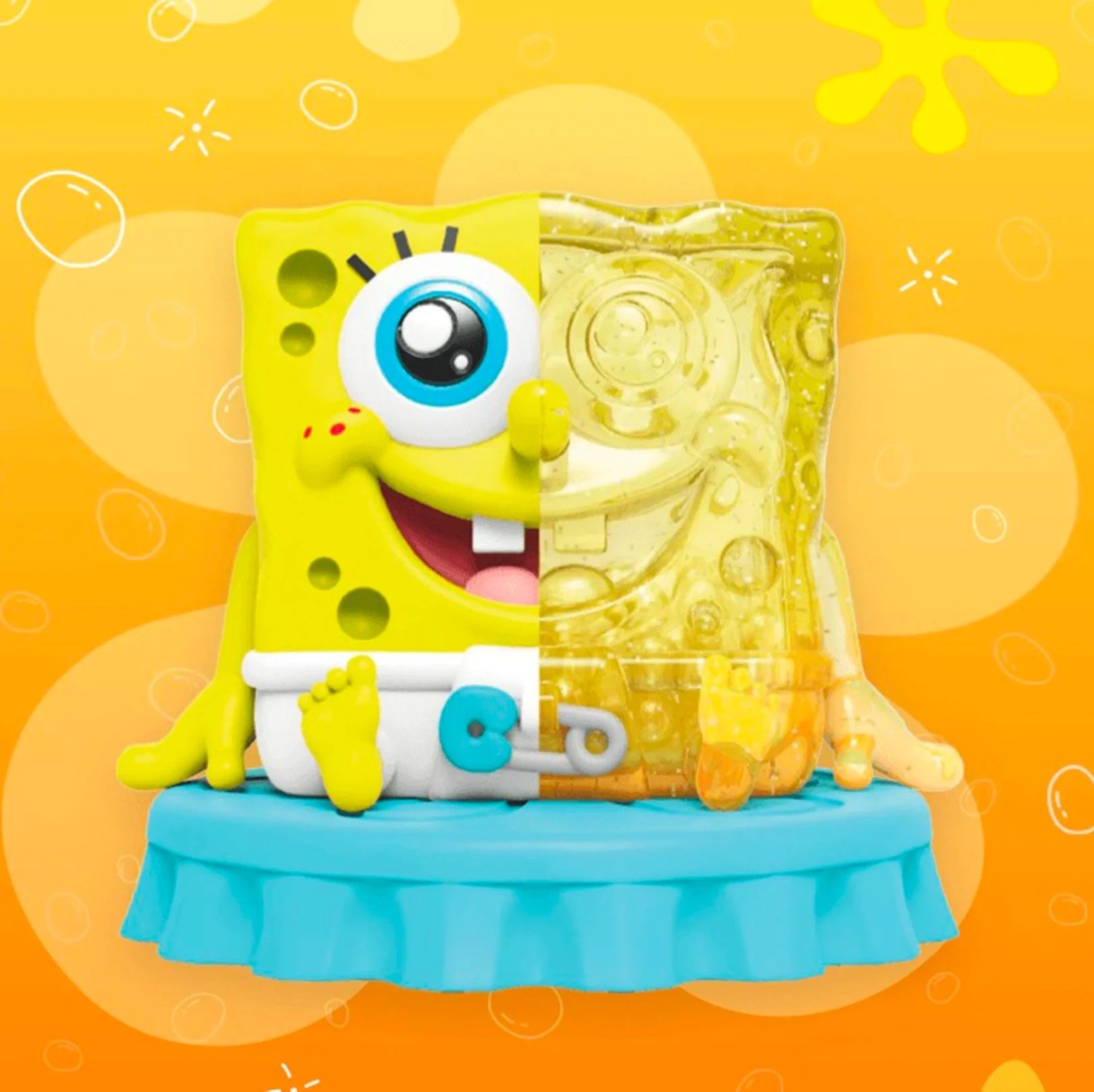 Официальная коллекция Mighty Jaxx x SpongeBob, уникальный split-дизайн, половина классический персонаж, половина прозрачная с визуальным эффектом