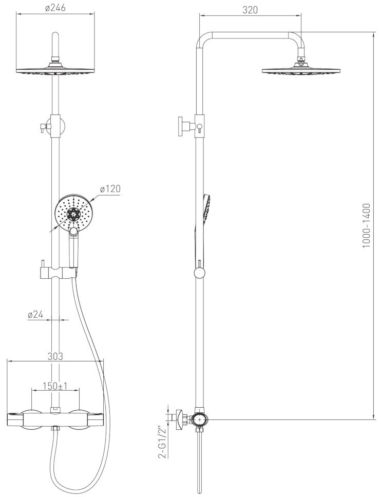 Диаметр душевого диска246 mm