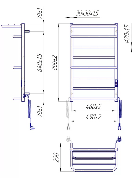 Полотенцесушитель Mario Luxor-I TR 800х500/290 TR K