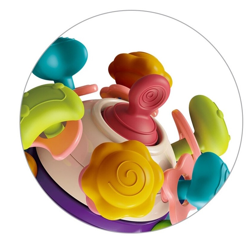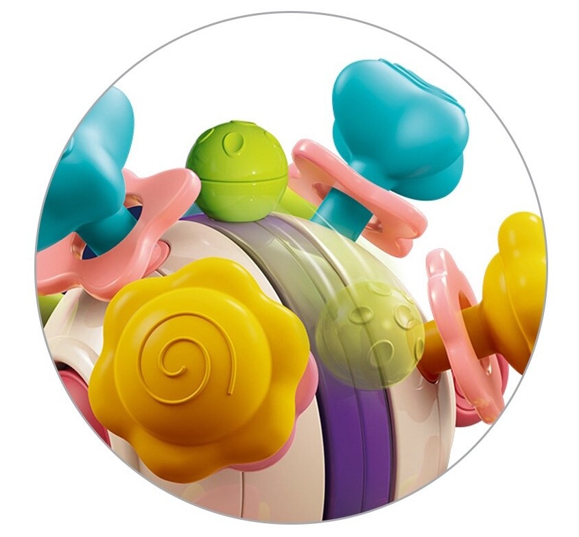 Интегрированное в игрушку, вращающееся кольцо не только привлекает внимание своим движением, но и издает деликатные звуки, которые стимулируют развитие слуха малышей.