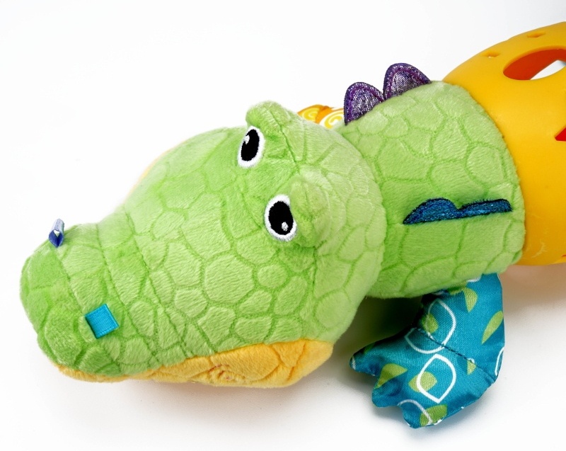Развивающая игрушка Крокодил Бенди для детей DD 80196 Balibazoo Его тело сделано из материалов с различной текстурой, которые помогают развивать познавательные навыки ребенка. Резиновый животик игрушки украшен дырочками разной формы, а внутри спрятан гремящий шарик.