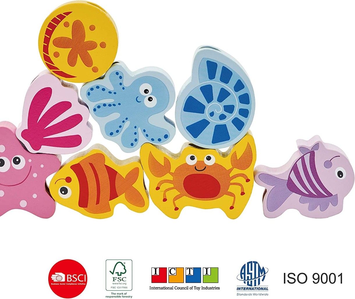 Забавные фигурки Морских обитателей можно использовать для сюжетных ролевых игр, так как они достаточно большого размера, что в свою очередь, облегчает детям нанизывания на шнуровку.