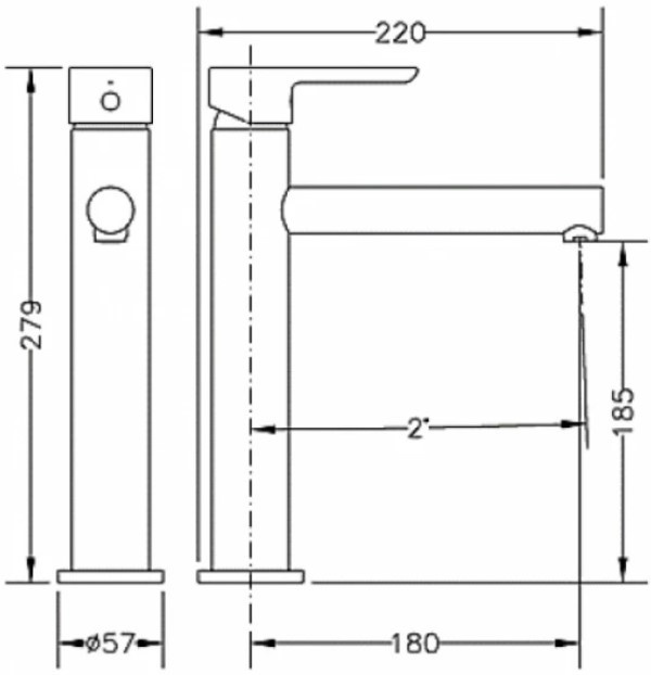 Высота излива185 мм