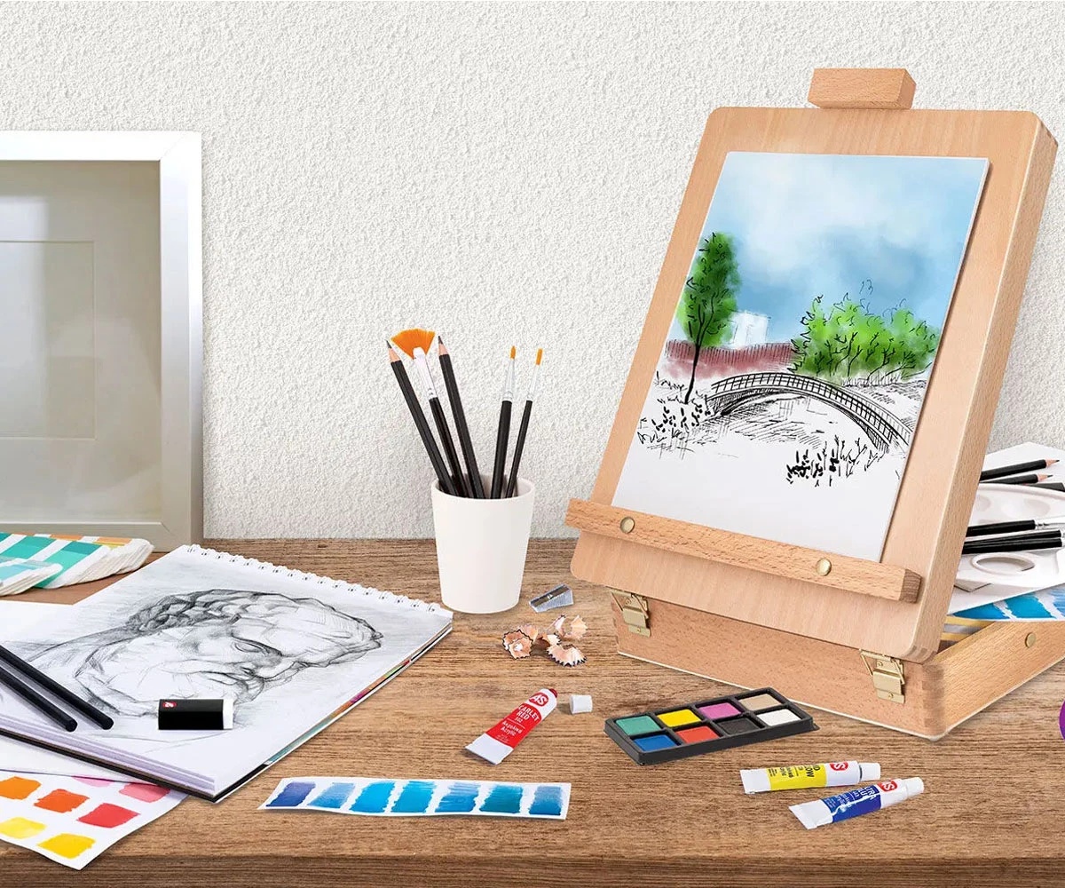 Mega Painting Workshop – это самый полный набор, который поможет вашему ребенку научиться рисовать, как настоящему художнику. Откройте деревянную коробку, установите её в качестве мольберта и положите сверху холст. В коробке также можно хранить все необходимые принадлежности, используя её как чемодан и кейс.