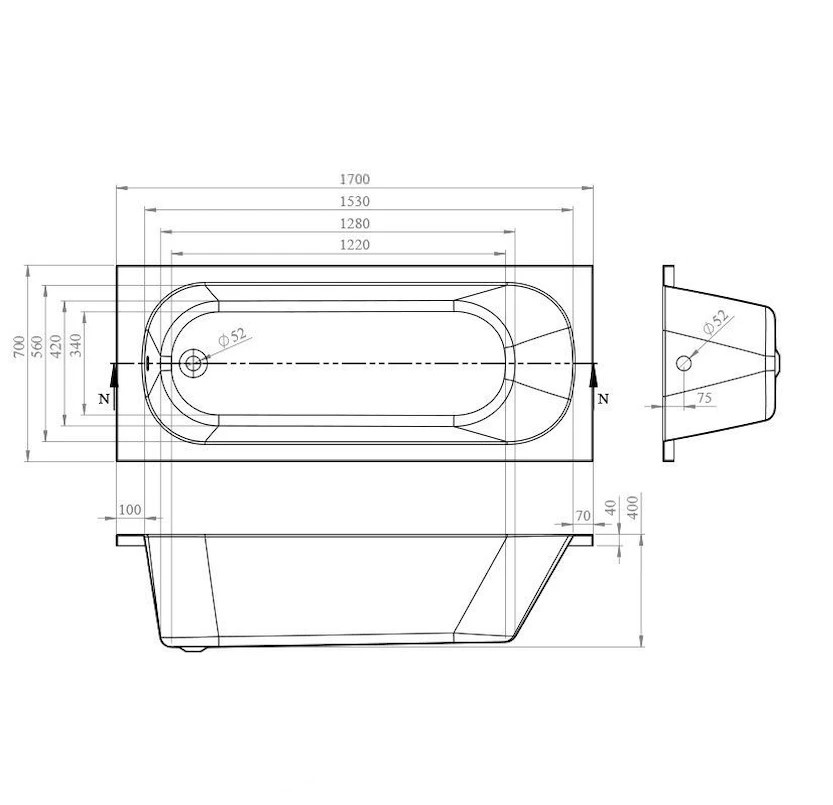 Ванна Bonito Home Salsa 1700x700 (122755)
