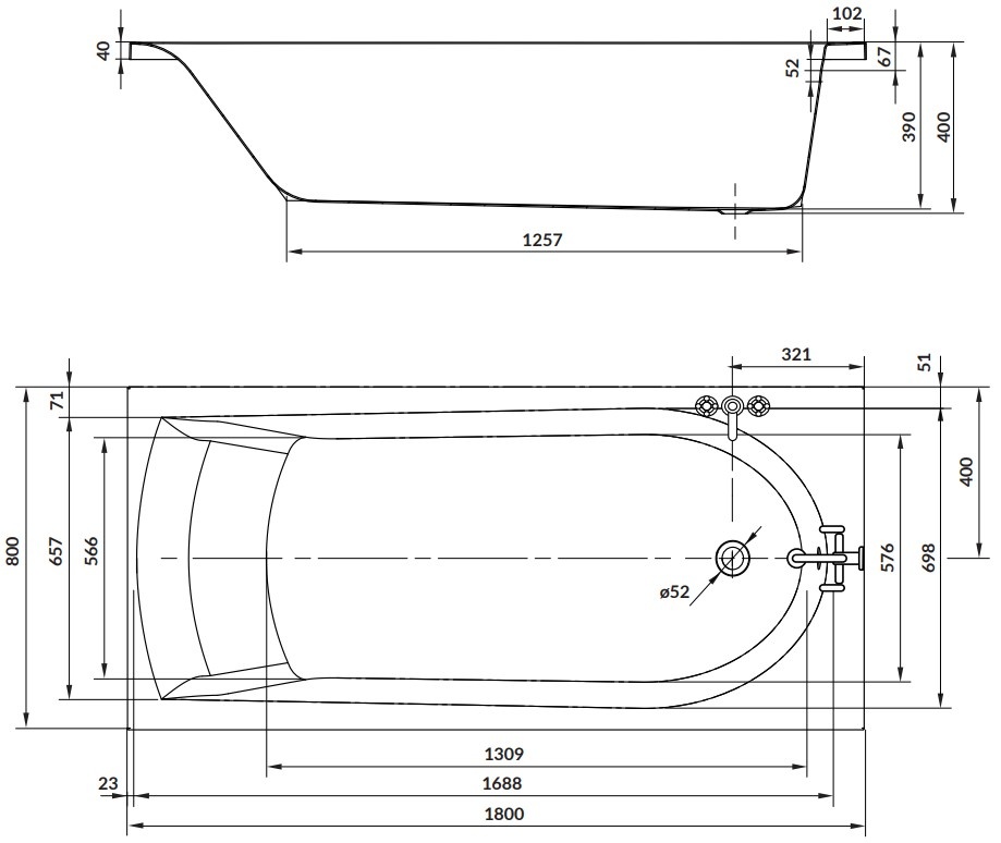 Размеры (ДхШхВ)180х80х40 см